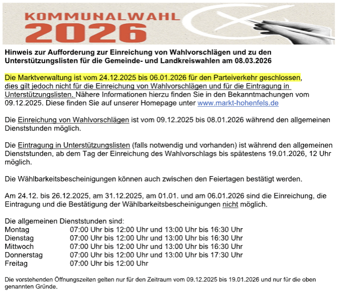 Aktuelles aus Markt Hohenfels